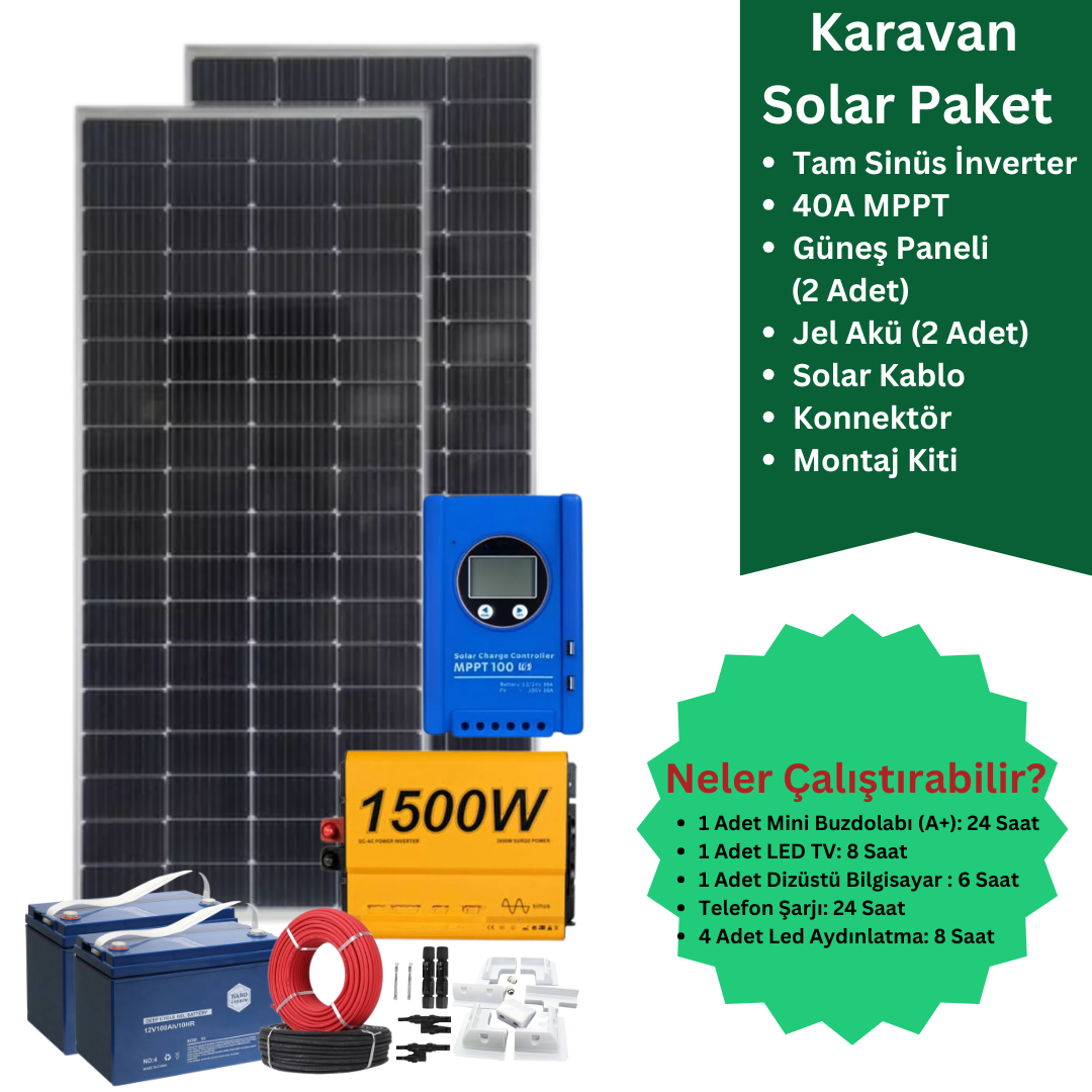 Karavan GES Paketi 8 – 440W / 200AH / MPPT / Tam Sinüs